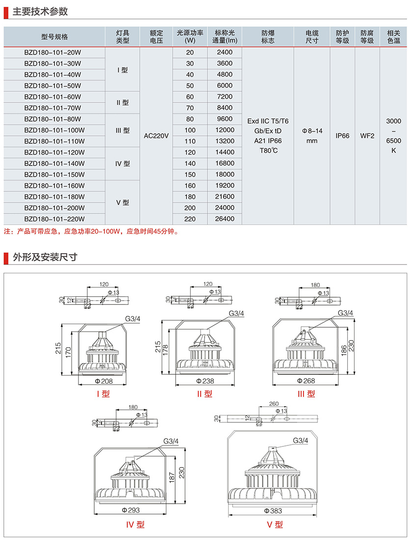BZD180-101系列防爆免维护LED照明灯(IIC)